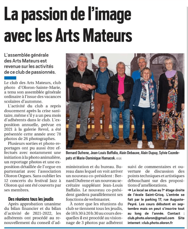 C’est jeudi 10 novembre que s’est déroulé l’assemblée générale des Arts Mateurs.
